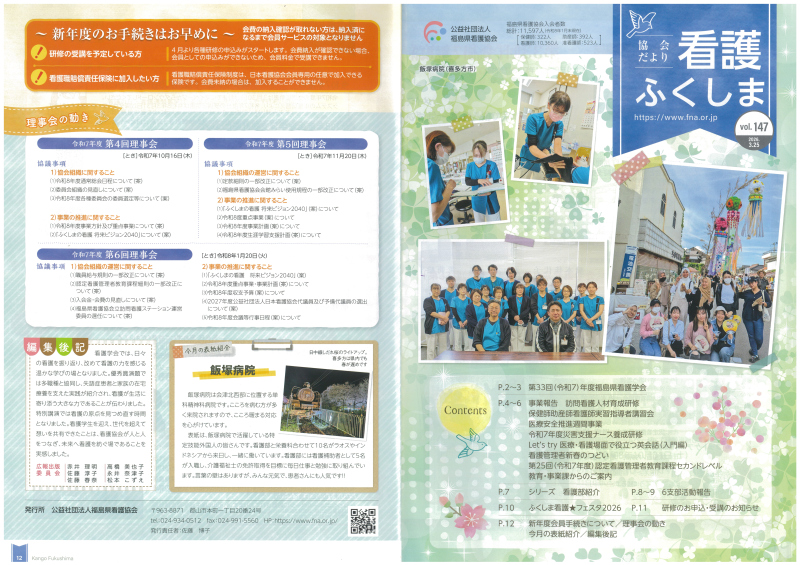 公益社団法人福島県看護協会より発行されている 「協会だより 看護ふくしま」の表紙で飯塚病院が紹介されました。